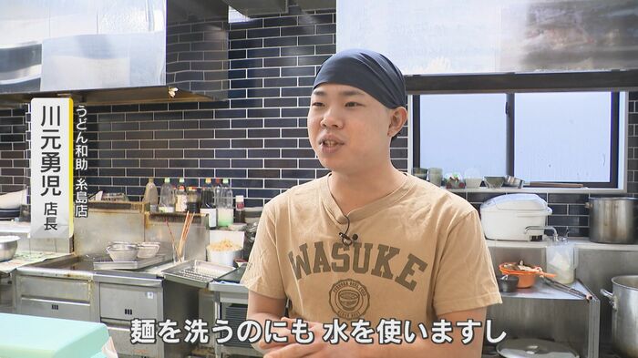 店長の川元勇児さんは「麺を洗うのにも水を使いますし、釜にお湯を張ったりとか、出汁にも水を使うし、水はたくさん使いますね」と話す。