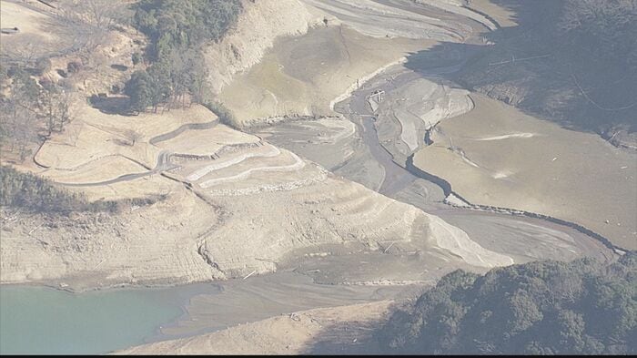2月10日時点で、福岡県内の主要な21ダムの貯水率は43.4%。2025年の同じ日は78.0%だったので、半分程度にまで低下している。主要ダムの寺内ダムや江川ダムがある朝倉市の1月の降水量をみてみると、1カ月間に降った雨は12ミリ。これは平年の1月の降水量の5分の1程度で、この100年で1番少なかったという。