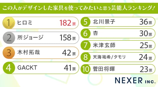 この人がデザインした家具を使ってみたいと思う芸能人ランキング!