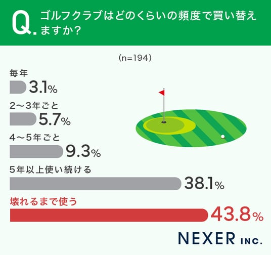 ■43.8%が、ゴルフクラブを「壊れるまで使う」と回答