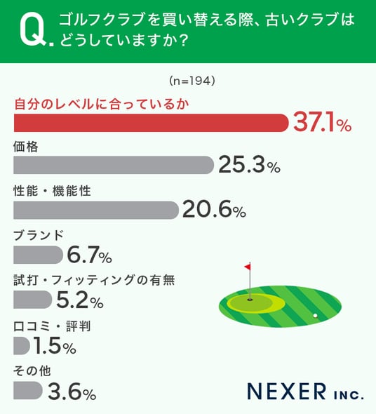 ■37.1%が、ゴルフ用品選びで「自分のレベルに合っているか」を最重視