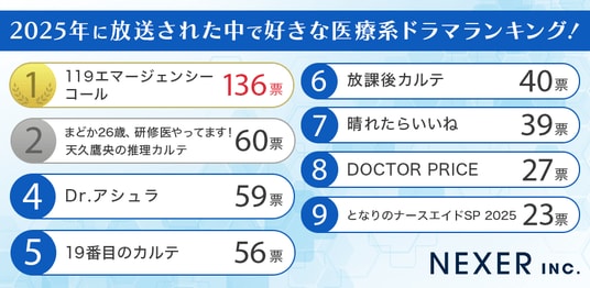 株式会社NEXER・2025年に放送された好きな医療系ドラマに関する調査