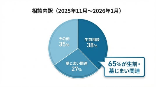 生前および墓じまい関連の相談は合計65%。