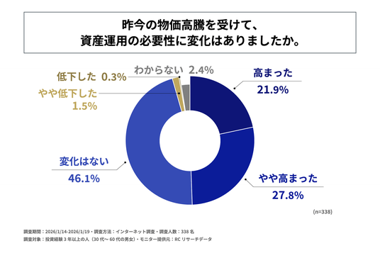 投資経験3年以上の人の約半数が、昨今の物価高騰を受けて資産運用の必要性が高まったと感じている