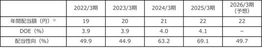 (※)2024年2月1日を効力発生日として、普通株式1株につき2株の割合で株式分割を実施。 1株当たりの配当金については、当該株式分割調整後の数値を記載