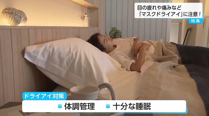 まずは体調管理と十分な睡眠をとることはとても大切。マスクドライアイの症状だと気づかずに苦労されている方も多くいると思うので、一度医師に相談を。