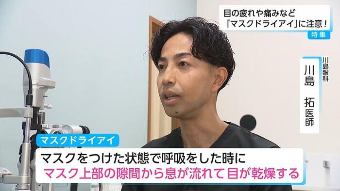 宮崎市にある川島眼科の川島拓医師は、ドライアイの一種である「マスクドライアイ」について、日常的にマスクを長時間着用する人は注意が必要だと指摘する。