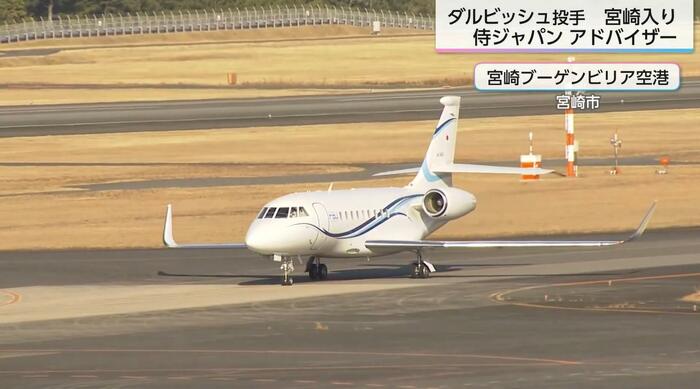 アドバイザーとして参加する米大リーグ・パドレスのダルビッシュ有投手が13日午後、チャーター機で宮崎空港に到着した。