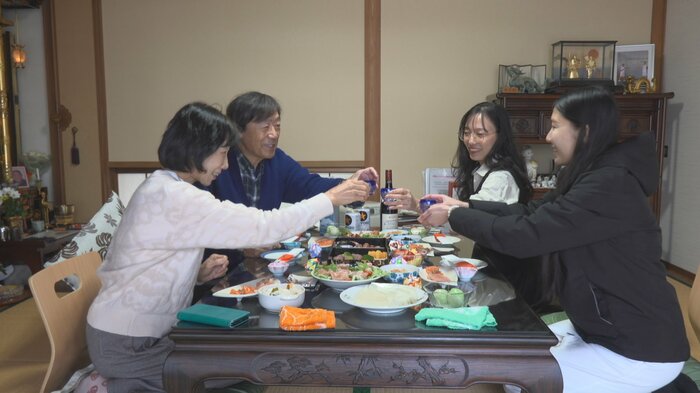 和やかな会話が続く食卓。本当の娘のように接してくれる布村さん夫婦の存在が、故郷の家族と離れて暮らすチさんの心の拠り所になっている。