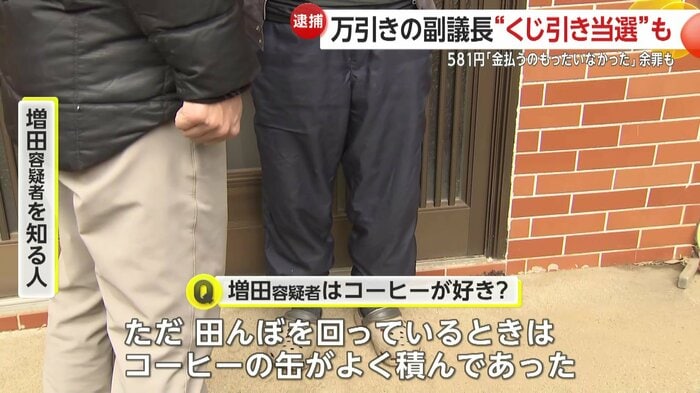 (Q.増田容疑者はコーヒーが好き?)そこまでは知らない。ただ田んぼを回っている時はコーヒーの缶をよく積んであった。