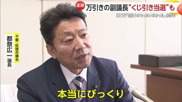 市議の逮捕について、匝瑳市の都祭議長は「事実なら遺憾」としたうえで、「本当にびっくり。(Q.お金に困っている様子は?)市議会議員として報酬ももらっているし、お金に困っているとか、そういったことはないと思う。(Q.インスタントコーヒー飲んでいるのを見たことは?)議会では、議員がお金を出しあってコーヒー・お茶など用意してある。議会の中で粉のコーヒーを溶かして飲むことはなかったと思う」と話す。