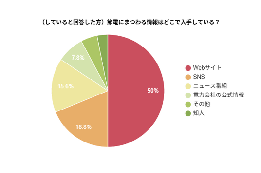 節電に関する情報の入手先は「Webサイト」が50%で最多