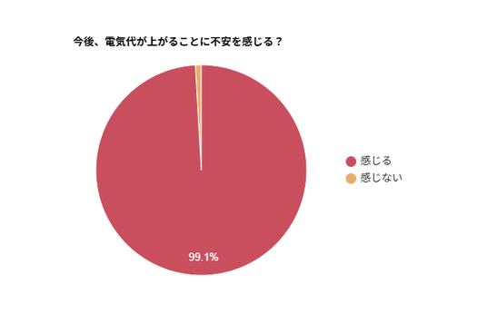 電気代上昇に「不安を感じる」と回答した方が約99%