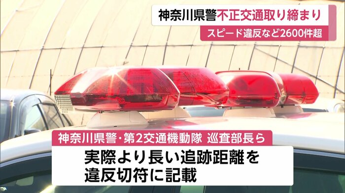 捜査関係者によると、神奈川県警第2交通機動隊の巡査部長らはスピード違反などを取り締まる際、必要な距離を追跡せずに取り締まりを行い、実際よりも長い追跡距離を違反切符に記載したということだ。