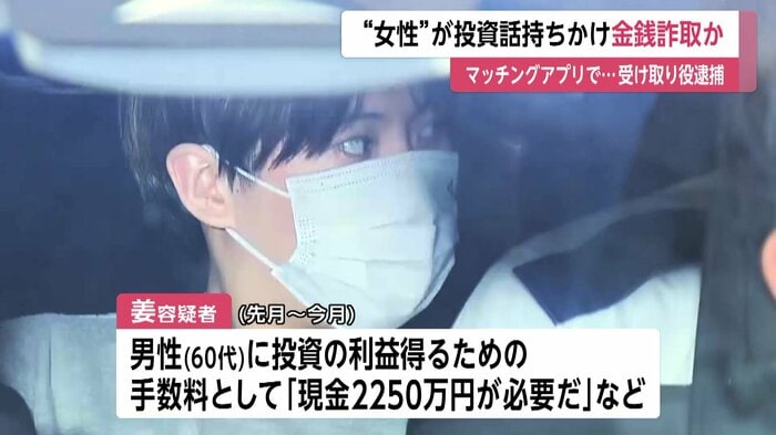 女性を名乗る人物がマッチングアプリで知り合った男性に投資話を持ちかけて金をだまし取ろうとした疑いで受け子の中国人の男が逮捕された。