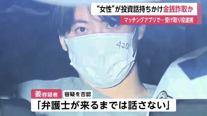 中国国籍の姜恒容疑者(21)は、2026年1月から2月にかけて、仲間と共謀して男性に、投資の利益を得るための手数料として「現金2250万円が必要だ」などと嘘をつき、金をだまし取ろうとした疑いが持たれている。