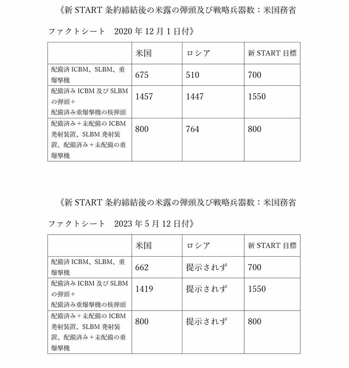 いずれにせよ、上記の表で示したように、2020年12月の時点で、米露は、新START条約で設定した「数量」の目標は、達成していた。