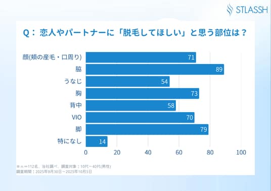 女性脱毛サロン「ストラッシュ」は、112名の男性を対象に「女性の脱毛」についてリアルな調査を実施。