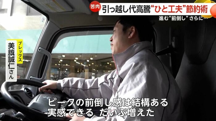 引っ越し業者「ブレックス」の美籏誠仁さんも「ピークの前倒し感は結構ある。だいぶ増えた。繁忙期がもう1カ月増えたみたい」と話す。ピークの3月や4月を避けて、2月に前倒しする人が増えているという。