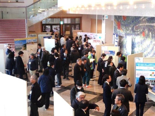 また、会場では、デジタル田園健康特区に関する企業・団体のブース出展もあり、本学からは、実際に吉備中央町で活動している医学部保健学科の学生、教員らがきびアプリの普及活動に関するポスター発表を行いました。