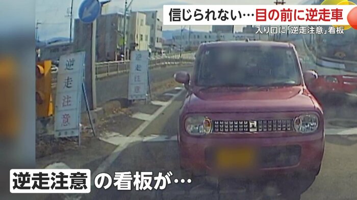 長野市で10日午後2時頃に撮影されたのは、逆走車が目の前に迫る恐怖の瞬間だ。