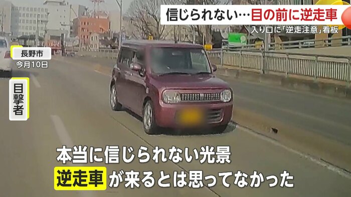 目撃者は、「本当に信じられない光景。逆走車が来るとは全く思っていなかったのでゾッとした」と振り返る。