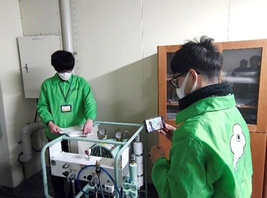 2月2日にヘリウムガス回収用圧縮機1台とヘリウムガス回収用ガスバッグ10個を納品し、NMR装置とガスバッグを専用のホース等で接続する作業を行いました。翌3日には、回収用圧縮機の試運転等を行い、NMR装置からガスバッグへのヘリウムガスの回収を開始しました。