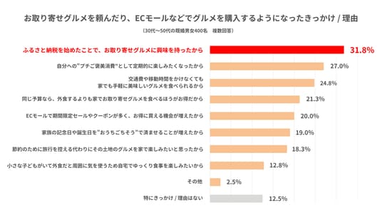 ・お取り寄せグルメを頼むようになったきっかけ1位は「ふるさと納税」で31.8%。