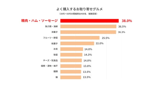 よく購入するお取り寄せグルメ1位は「精肉・ハム・ソーセージ」