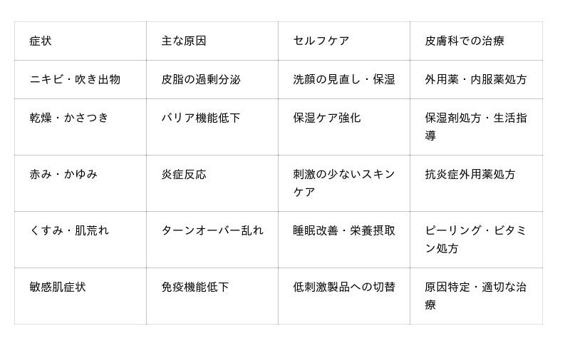 A. 基本的なスキンケアと生活習慣の改善が効果的ですが、長引く場合は皮膚科受診をお勧めします。