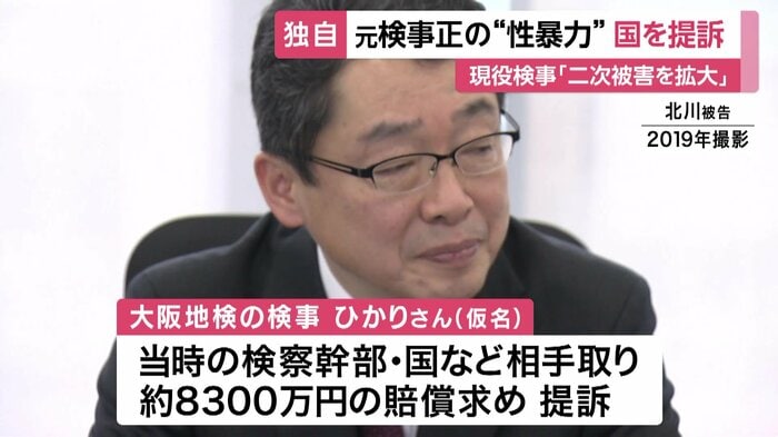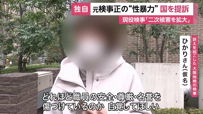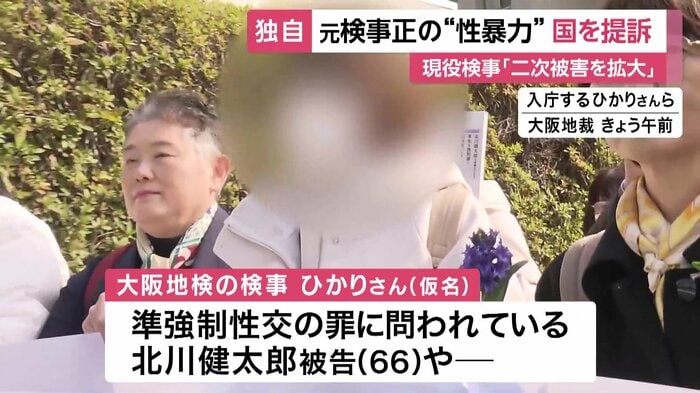 大阪地検の検事・ひかりさん(仮名)は準強制性交の罪に問われている元大阪地検の検事正・北川健太郎被告(66)や当時の検察幹部、それに国などを相手どり約8300万円の損害賠償を求め16日、提訴した。