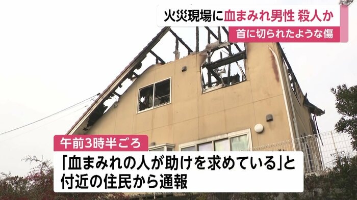 警察によると、午前3時半ごろ東広島市で、「血まみれの人が助けを求めている」と付近の住民から通報があり、消防にも「建物2階から火が出ている」と通報があった。