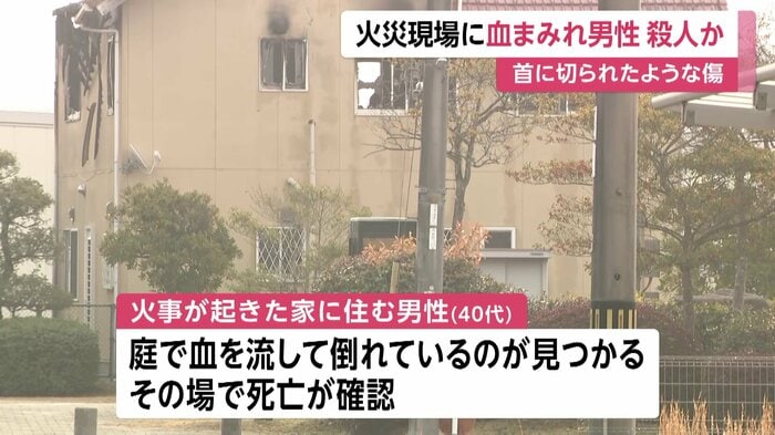 火事が起きている住宅の庭で、この家の40代の男性が血を流して倒れているのが見つかり、その場で死亡が確認された。
