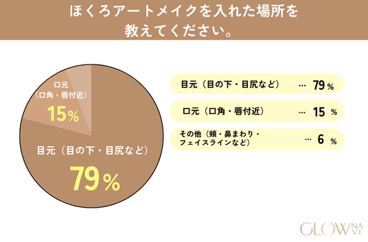 - ほくろアートメイクを入れた箇所は「目元(目の下・目尻など)」(79%)が最多