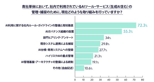 ・AI利用に関する社内ルール整備は72.3%、AIガバナンス組織の設置は55.3%の企業が実施