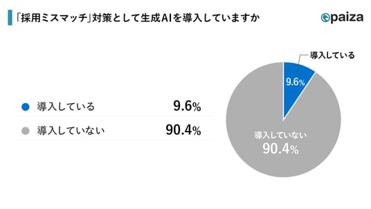 2022年11月のChatGPTの登場以来、爆発的進化を遂げ様々な業務に入りこんでいる生成AIですが、採用ミスマッチへの対策としては活用できている企業は1割にも満たないことが判明しました。