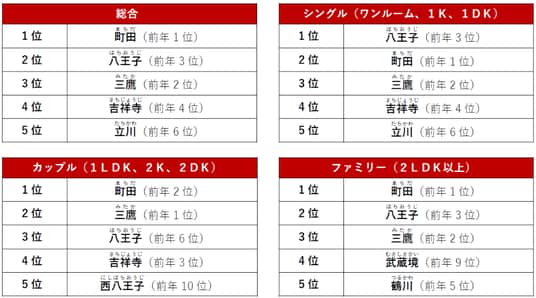 「アットホーム賃貸駅ランキング 東京都下編」 調査結果