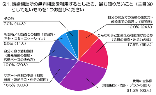 Q1.結婚相談所の無料相談を利用するとしたら、最も知りたいこと(主目的)として近いものを1つお選びください