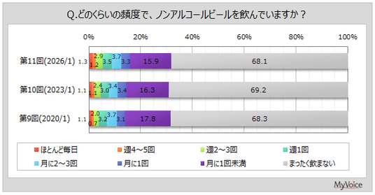 マイボイスコム株式会社(東京都千代田区、代表取締役社長:高井和久)は、11回目となる『ノンアルコールビール』に関するインターネット調査を2026年1月1日~7日に実施しました。