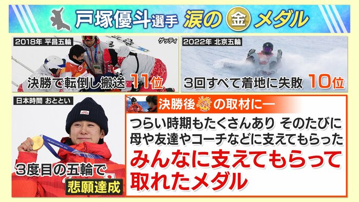 8年前の2018年の平昌大会は決勝で転倒し搬送されて11位、かなりのけがに…。続いて2022年の北京大会は3回すべて着地に失敗しての悔しい10位となりました。