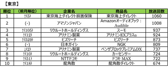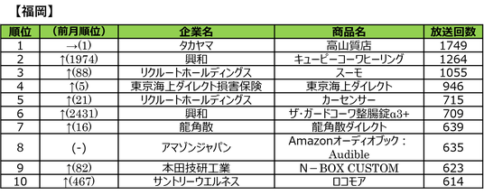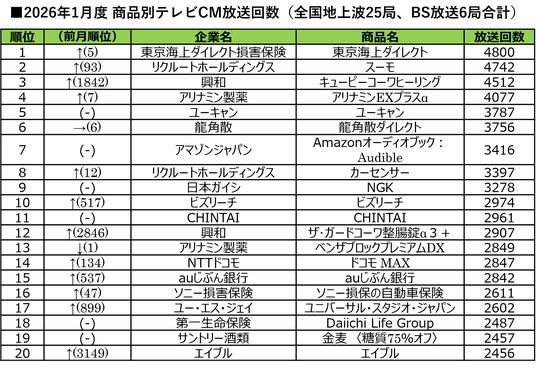 ■2026年1月度 商品別テレビCM放送回数ランキング