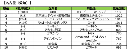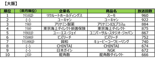 ■2026年1月度 エリア別テレビCM放送回数ランキング