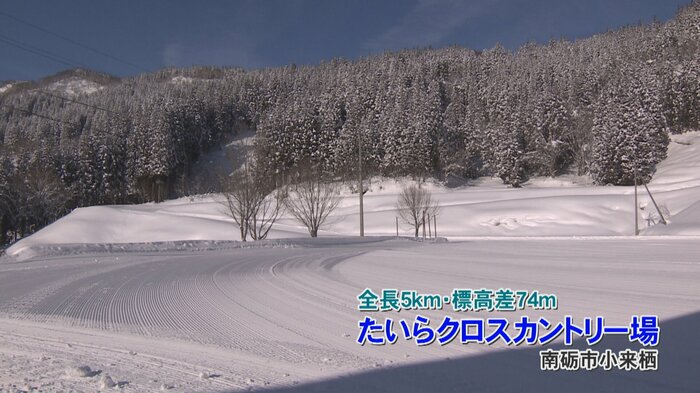 訪れたのは全長5キロ、標高差74メートルと、五箇山の森の中を走るたいらクロスカントリー場です。ここはミラノ・コルティナオリンピックの日本代表、廣瀬選手と山崎選手も練習を行うコース。一般の人も利用でき、スキーやブーツのレンタルもあるため、初心者でも気軽に体験することができます。