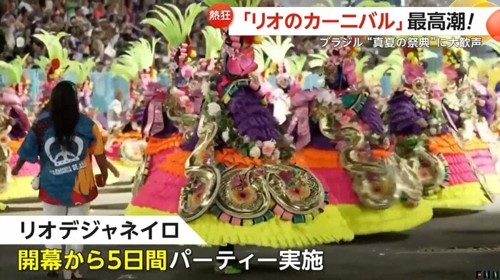 南米ブラジルのリオデジャネイロで「真夏の祭典」リオのカーニバルが開幕した。会場では「市の鍵」の受け渡しを合図に、ド派手な衣装のダンサーやドラム隊が街を埋め尽くした。