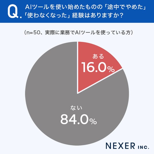 ■AIツールを「途中でやめた」経験がある人は16.0%