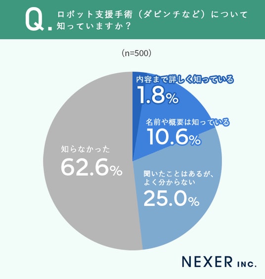 ■62.6%が「ロボット支援手術を知らなかった」と回答