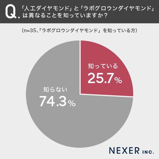 ■知っている方の74.3%が「人工ダイヤモンド」と「ラボグロウンダイヤモンド」の違いを「知らない」と回答