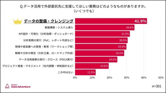 - 外部委託先に期待するデータ活用業務1位は「データ整備・クレンジング(41.9%)」