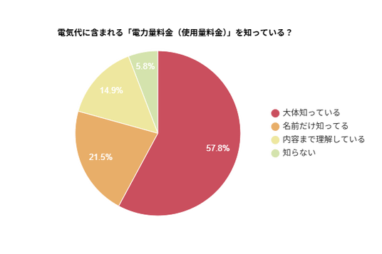 - 電力量料金を把握している人は約6割