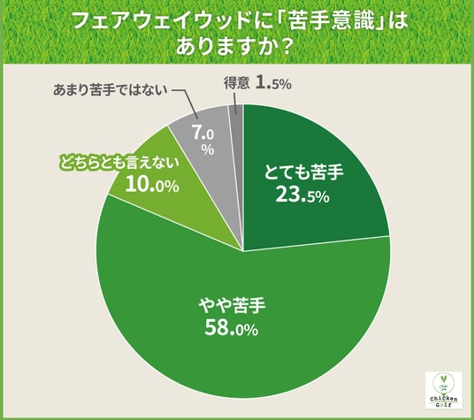 「とても苦手(23.50%)」「やや苦手(58.00%)」を合わせると、81.5%のアマチュアゴルファーがフェアウェイウッドに対して苦手意識を持っていることが分かりました。